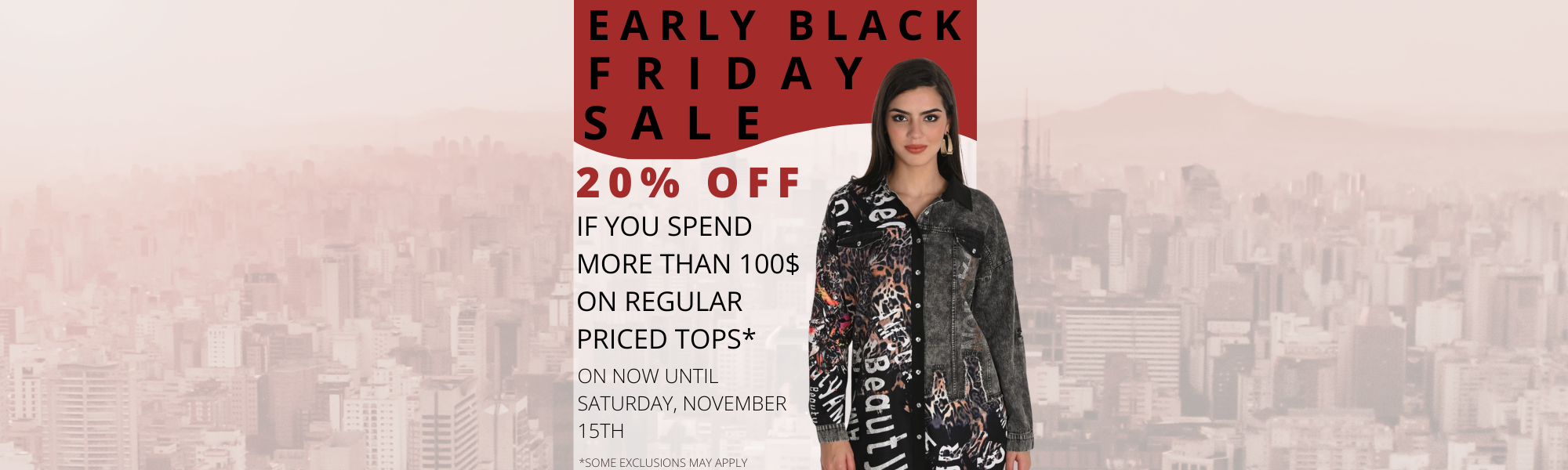 EARLY BLACK FRIDAY SALE! Enjoy 20% Off All Regular Priced Tops When You Spend $100 or More