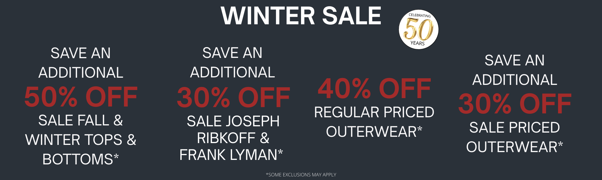 30% OFF FALL & WINTER JOSEPH RIBKOFF & FRANK LYMAN