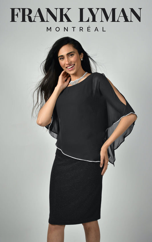 Chiffon & Silky Knit Poncho Top. Style JR251095