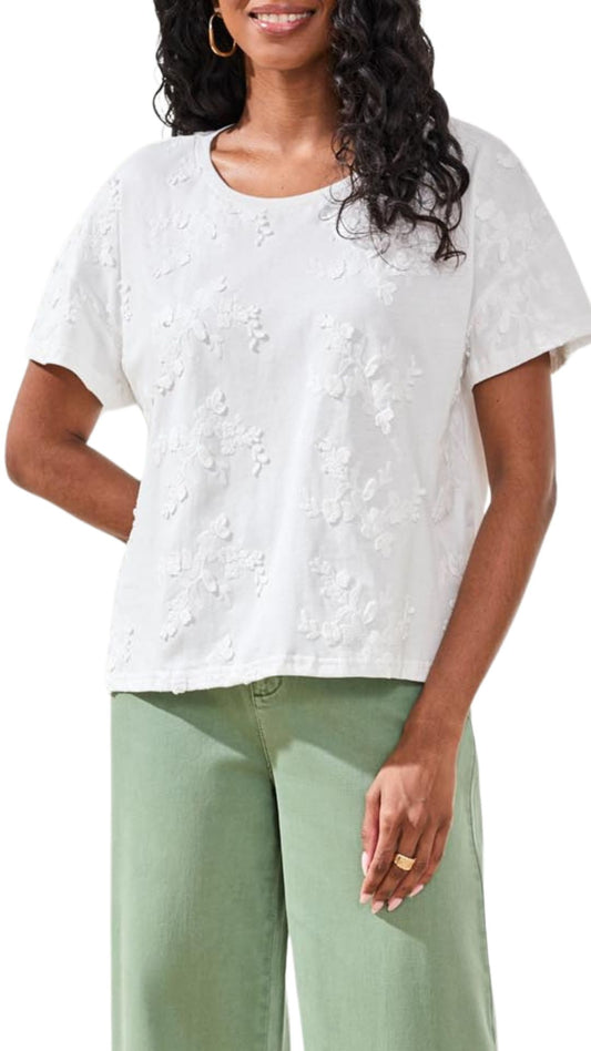 Floral Embroidered Crew Neck Top. Style TR3085O-8466