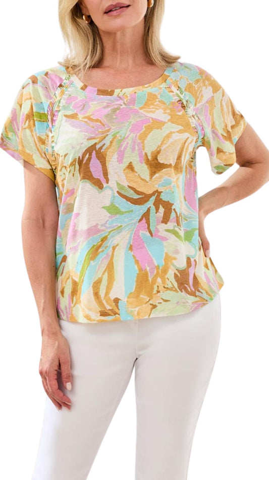 Scoop Neck Floral Print Pleat Detail Top. Style TR2435O-1557