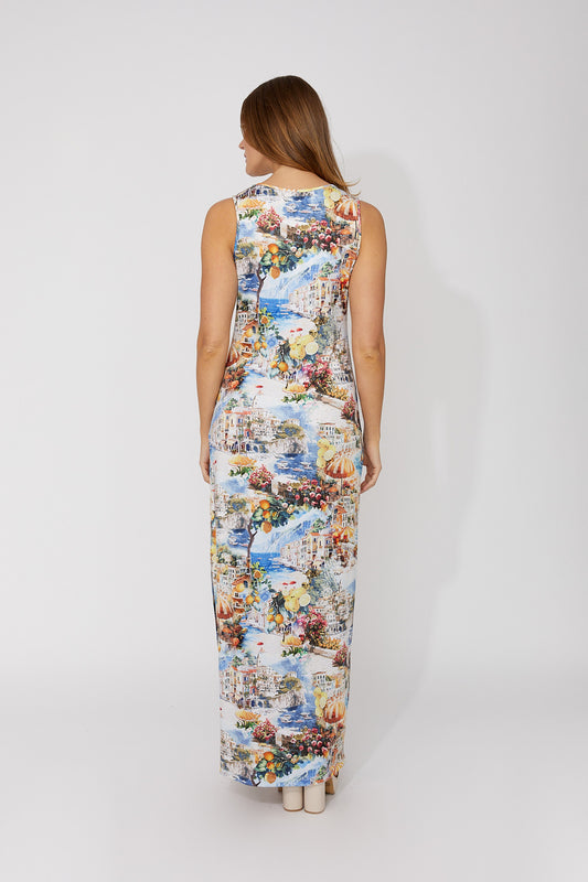 Greek Island Print Sleeveless Dress. Style FL266128