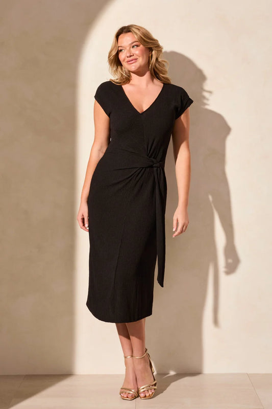 Side Tie Textured Jersey Midi Dress. Style TR2139O-8151