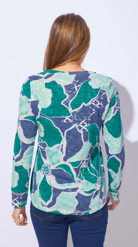 V-Neck Abstract Leaf Print Top. Style ESC17326
