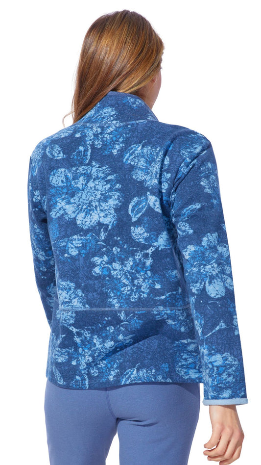 Quarter Zip Blue Tone Abstract Print Pullover. Style ESC14651