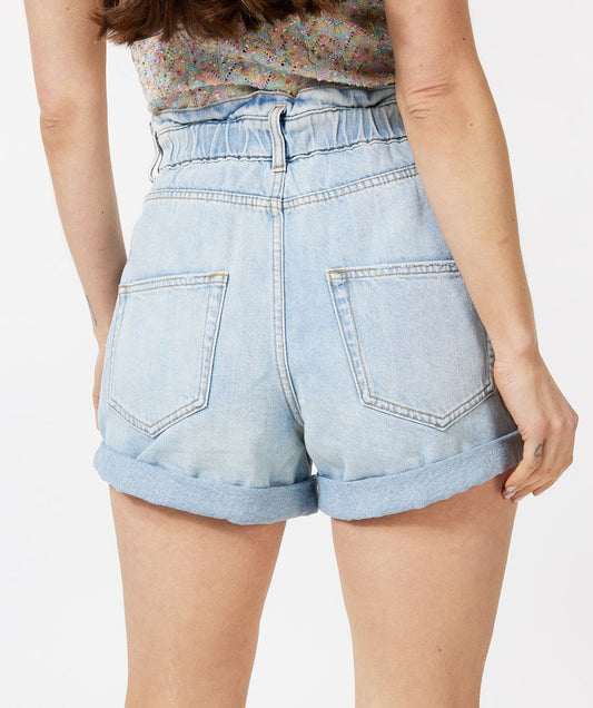 Paperbag Rolled Cuff Jean Shorts. Style ESQHS2312202