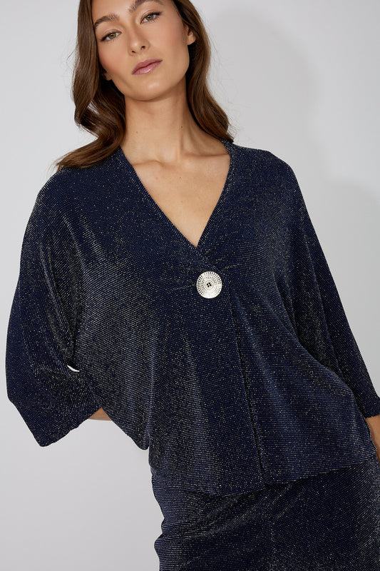 Glitter V-Neck 3/4 Sleeve Raglan Top. Style FL268226