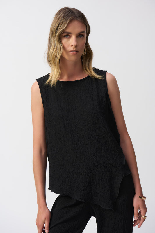 Seersucker Asymmetrical Sleeveless Top. Style JR251228