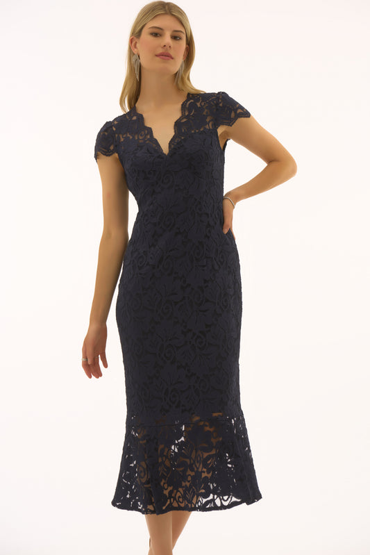 Stretch Lace Trumpet Midi Dress. Style JR251714