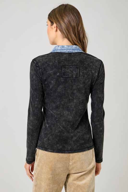 Button Front & Denim Edges Ribbed Shirt. Style MYS60719