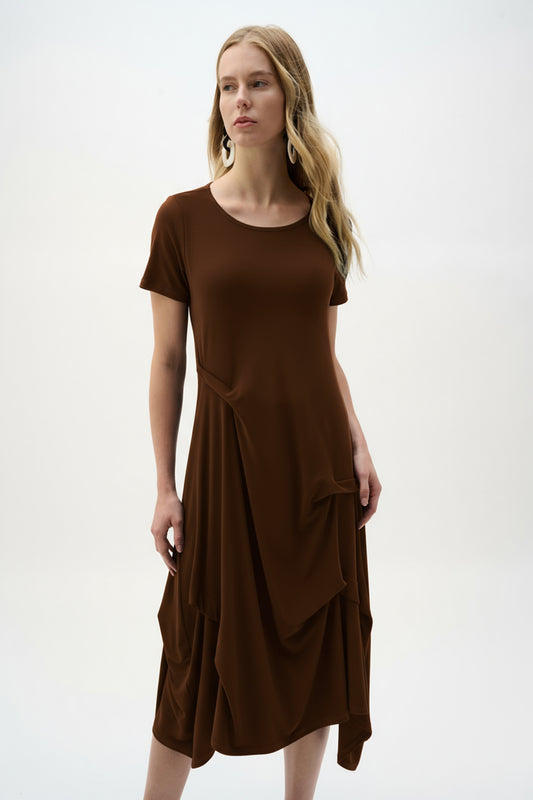 Silky Knit Boat Neck Trapeze Dress. Style JR262032