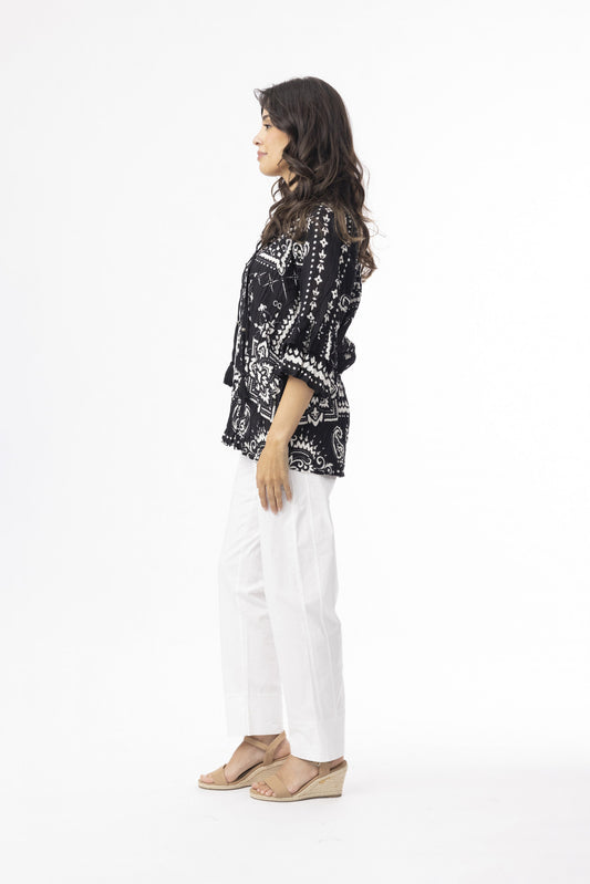 Tropical Print Boxy V-Neck Raglan Sleeve Top. Style ORI72567