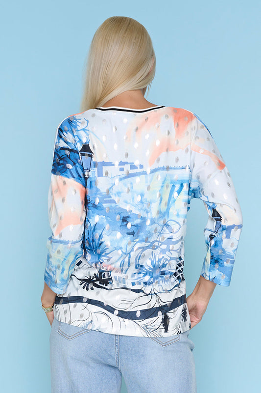 Lace Abstract Print 3/4 Sleeve Top. Style PYFC288PG