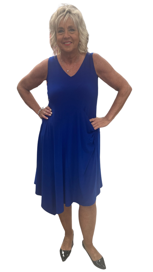 Side Slant Pocket Sleeveless Dress. Style SI2888LAPIS