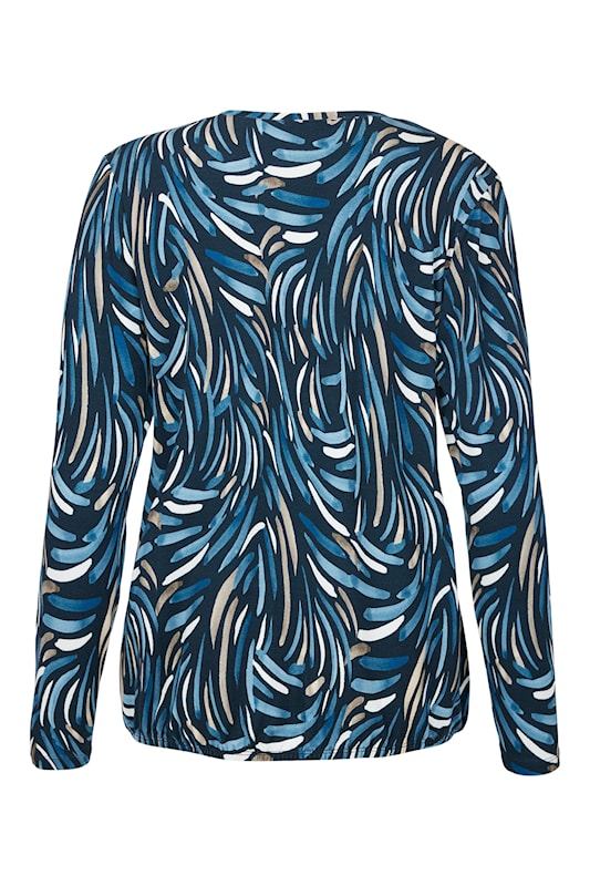 Round Neck Long Sleeve Blue Print Top. Style SUN6925