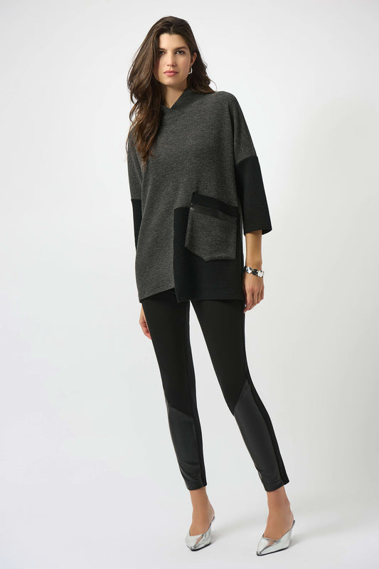 V-Neck Black Asymmetric Tunic. Style JR161066-BLK