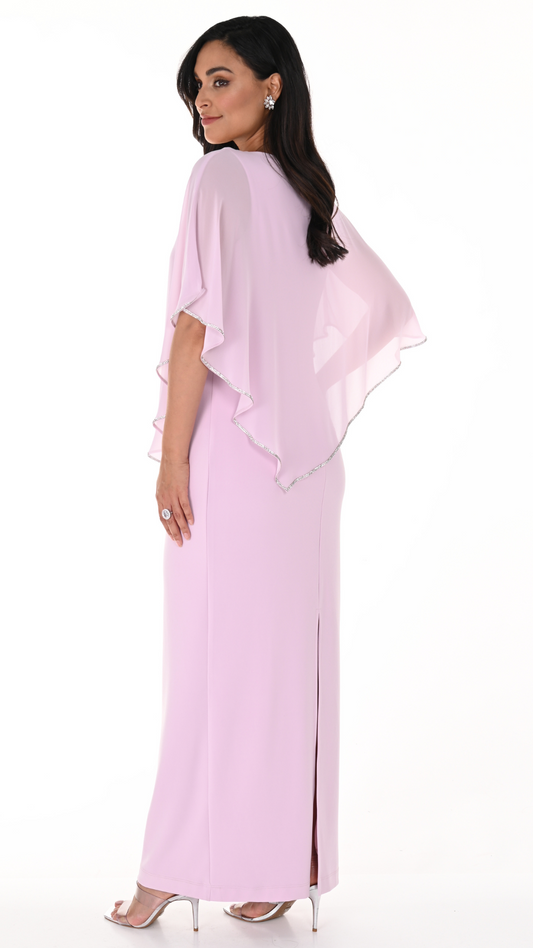 Rhinestone Trim Chiffon Cape Overlay Dress. Style FL248037