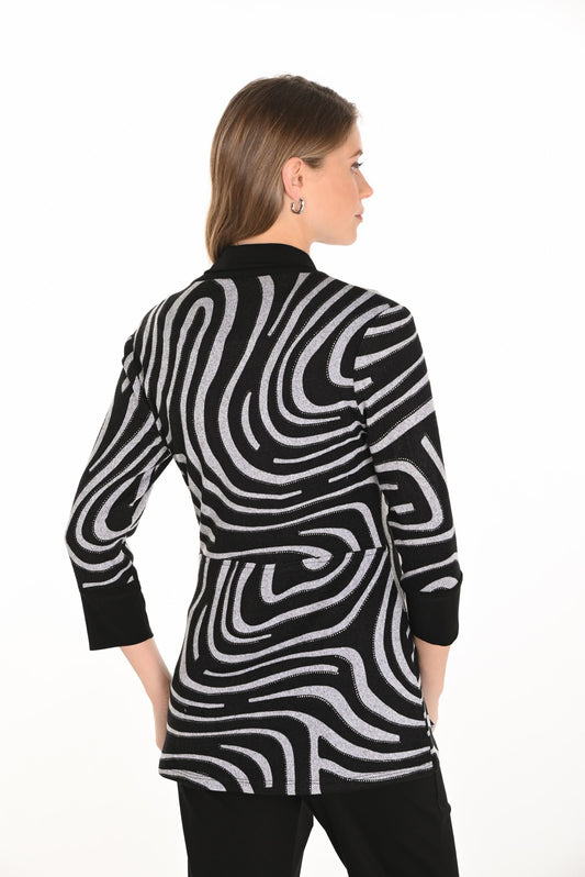 Black & Grey Zebra Print Cardigan. Style FL253175