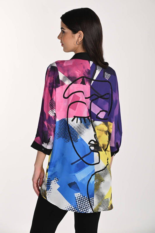 Button Front Geo Design Bell Sleeve Jacket. Style JR261980