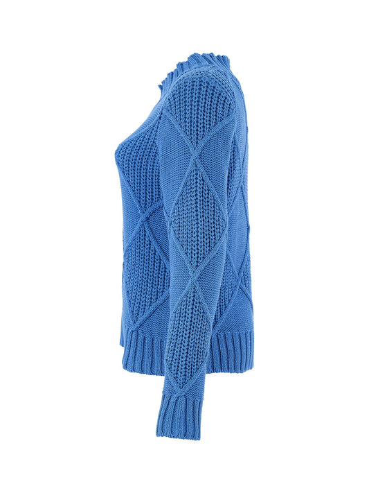 Teal Embroidered Detail Sleeves Sweater. Style ESQW2505704