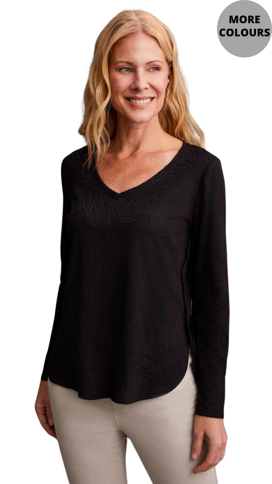 Patterned V-Neck Long Sleeve Top. Style SW102936