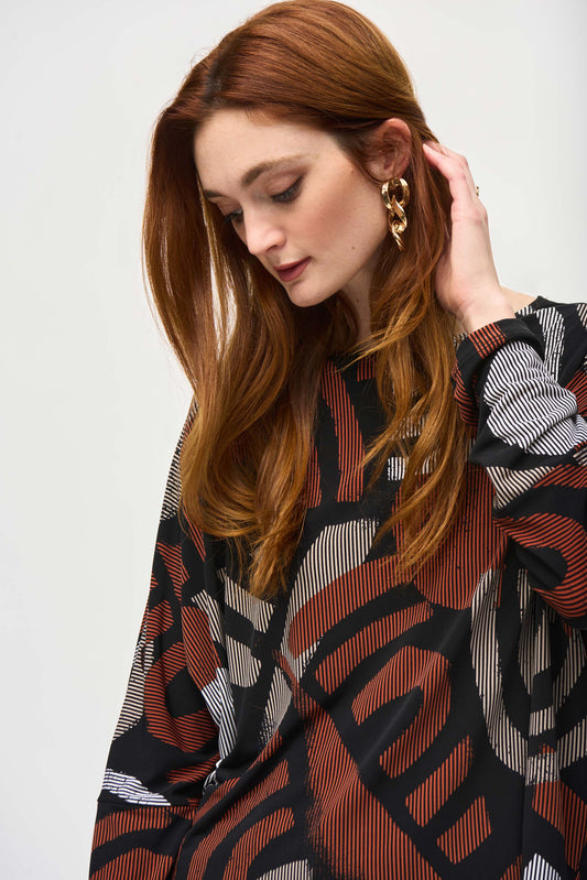 Silky Knit Geo Print Boxy Top. Style JR243101