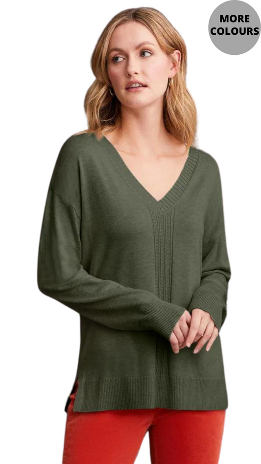 V-Neck Cable Knit Detail Sweater. Style TR1924O-133
