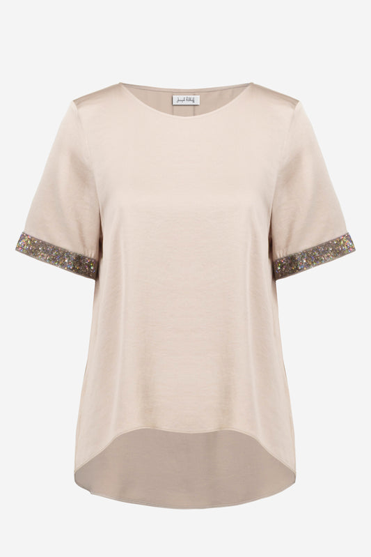 Recycled Satin Rhinestones Detail Top. Style JR261116