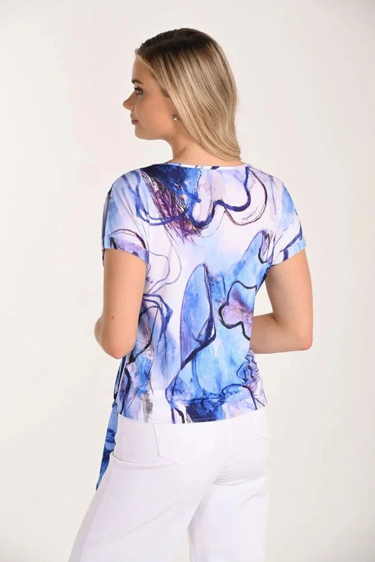 Scoop Neck Floral Print Pleat Detail Top. Style TR2435O-1557