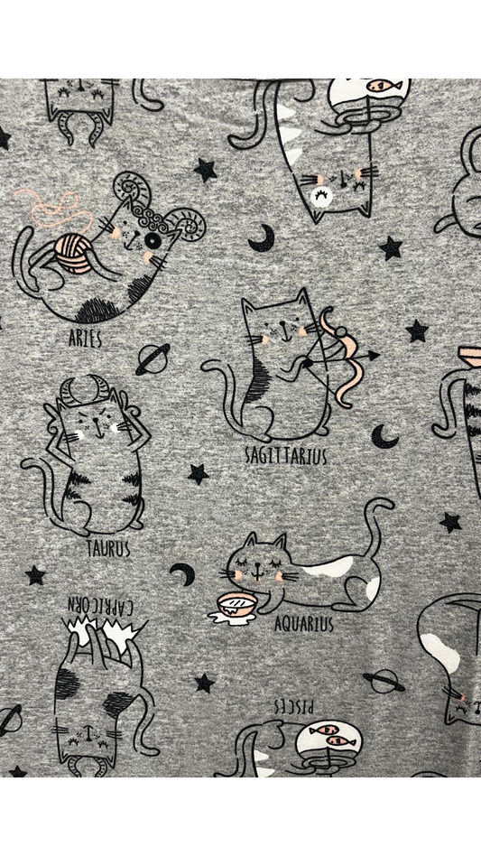 Astrology Cats Night Shirt. Style COTYM-NSGRYCAT
