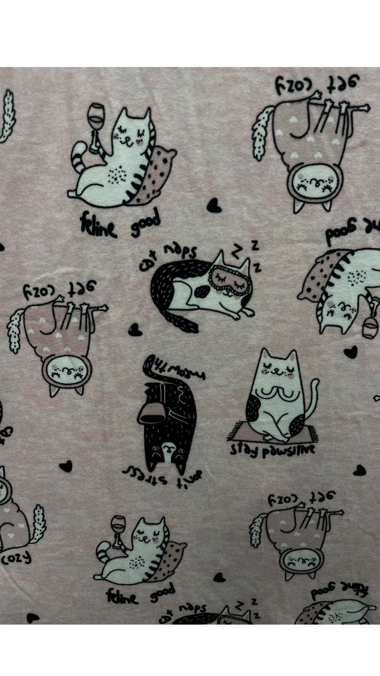 Two-Piece Cat Print Flannel PJ Set. Style PL987-1CATS