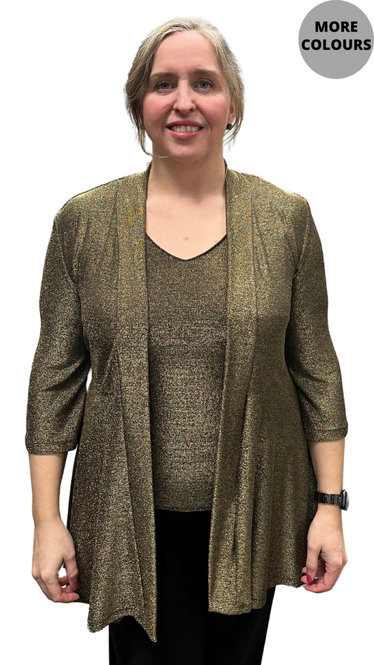 Glitter Stretch Open Front Cardigan. Style SW101000