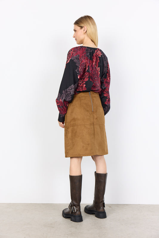 Button Front Red & Black Abstract Print Top. Style SOYA4F41395