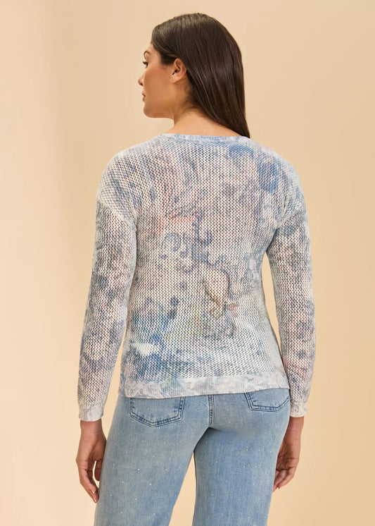 Pointelle Knit Printed Sweater. Style FD1337624