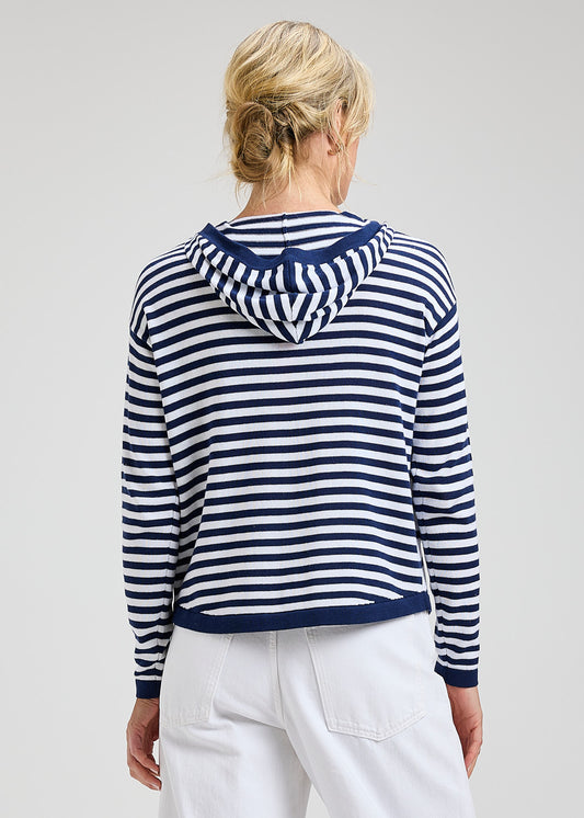 Striped Button Front Hooded Sweater. Style ZKP8409U