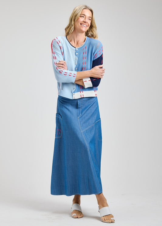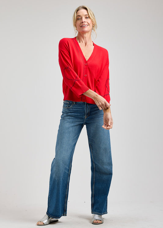 Dotted Embroidered Heart On Sleeve Design Cardigan. Style ZKP8432U