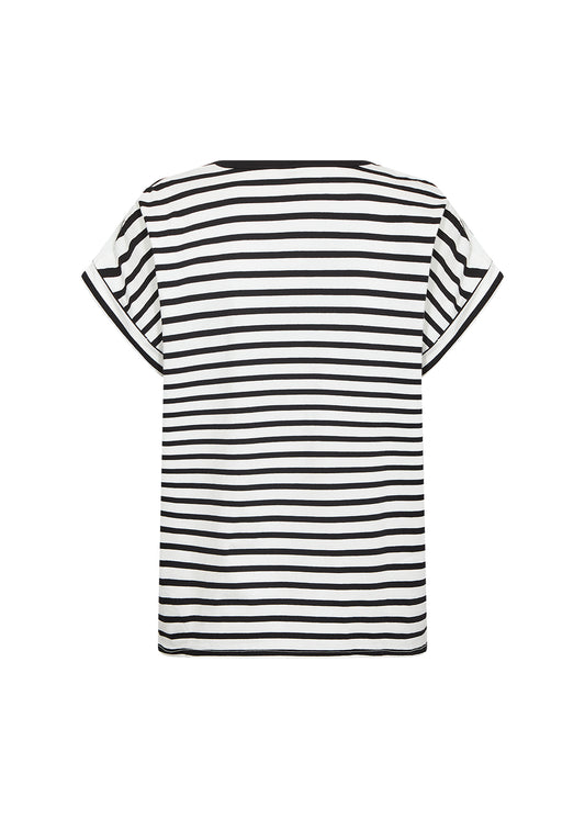 Horizontal Stripes Rolled Cuff Short Sleeve Top. Style SOYA27494