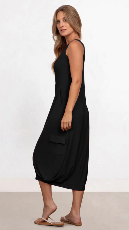 Pleat Hem Tank Midi Dress. Style SI28131BLK