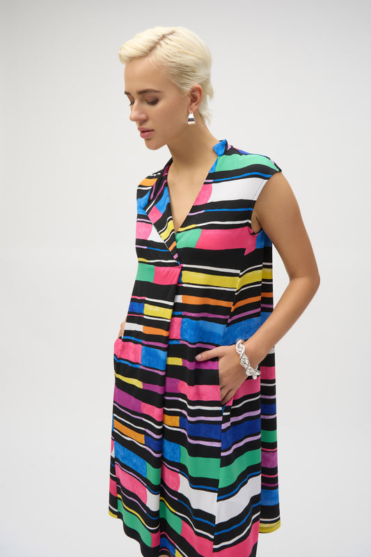 Silky Knit Stripe Print Trapeze Dress. Style JR252171