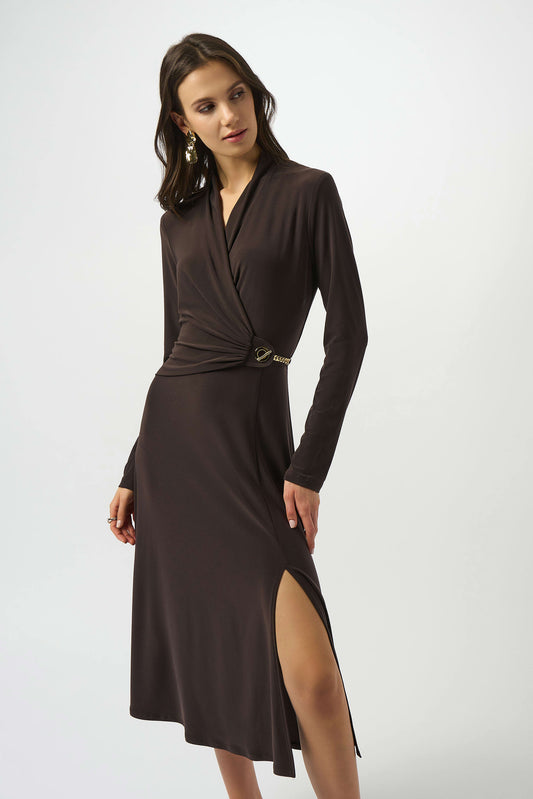 Silky Knit Fit and Flare Wrap Dress. Style JR253235