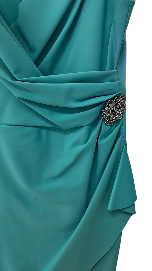 Rhinestone Brooch Side Gather Dress. Style FL249011