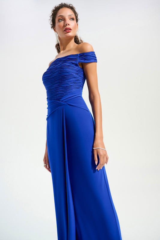 Royal Sapphire Off the Shoulder Gown. Style JR261733