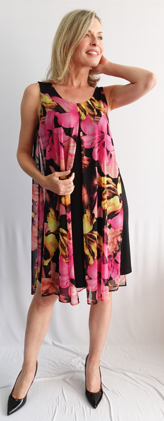 Sheer Floral Overlay Sleeveless Dress. Style SW97225