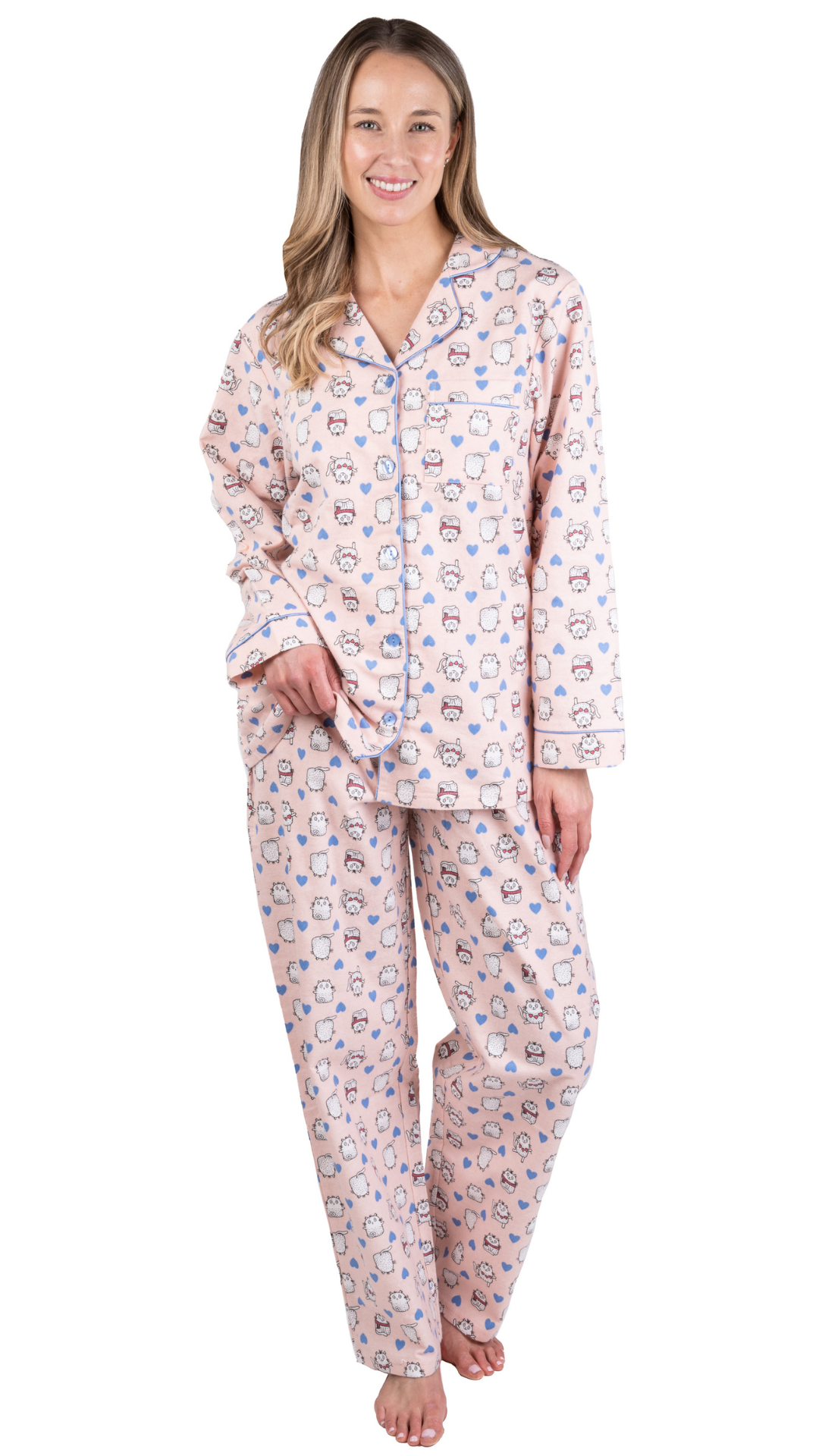 Two-Piece Cat Print Flannel PJ Set. Style PL987-1CATS