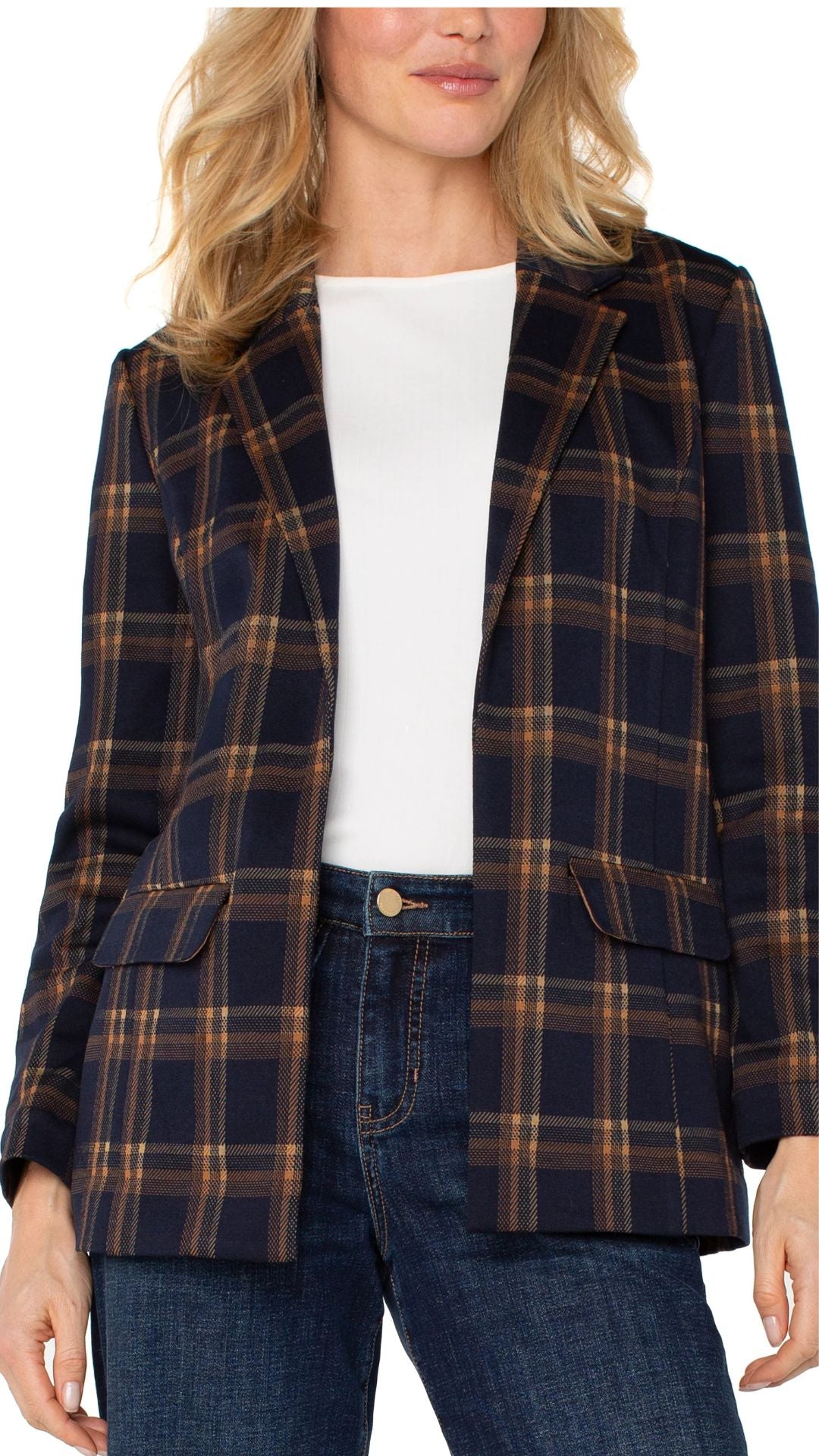 Open Front Plaid Boyfriend Blazer. Style LVLM1210NW15