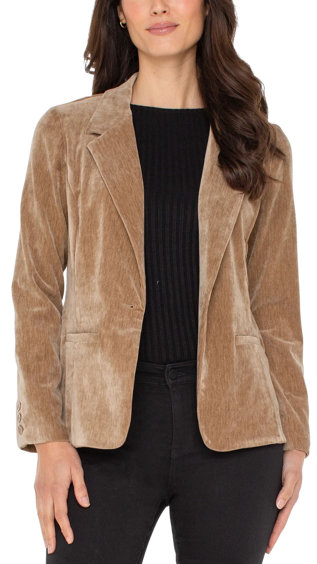 Open Front Velvet Blazer. Style LVLM1601UC1