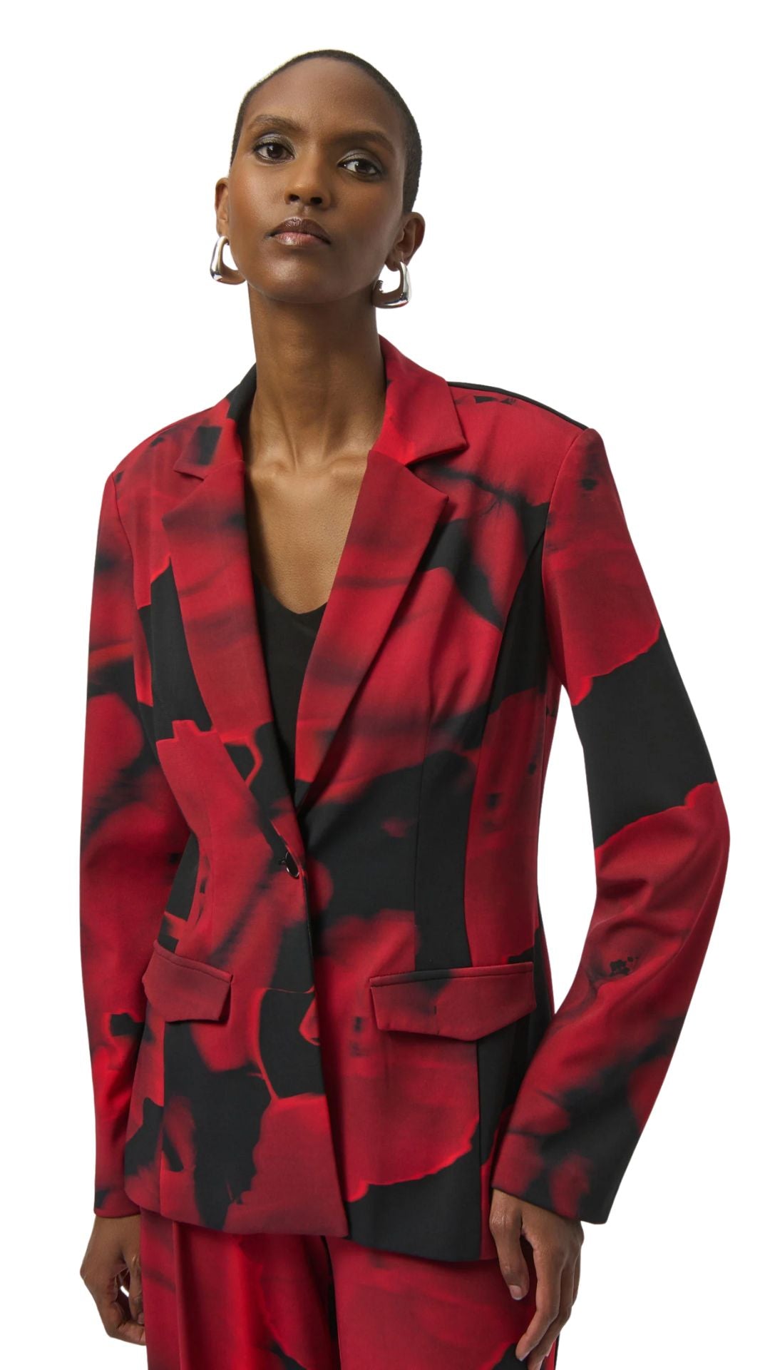 Silky Knit Abstract Print Straight Blazer. Style JR254092