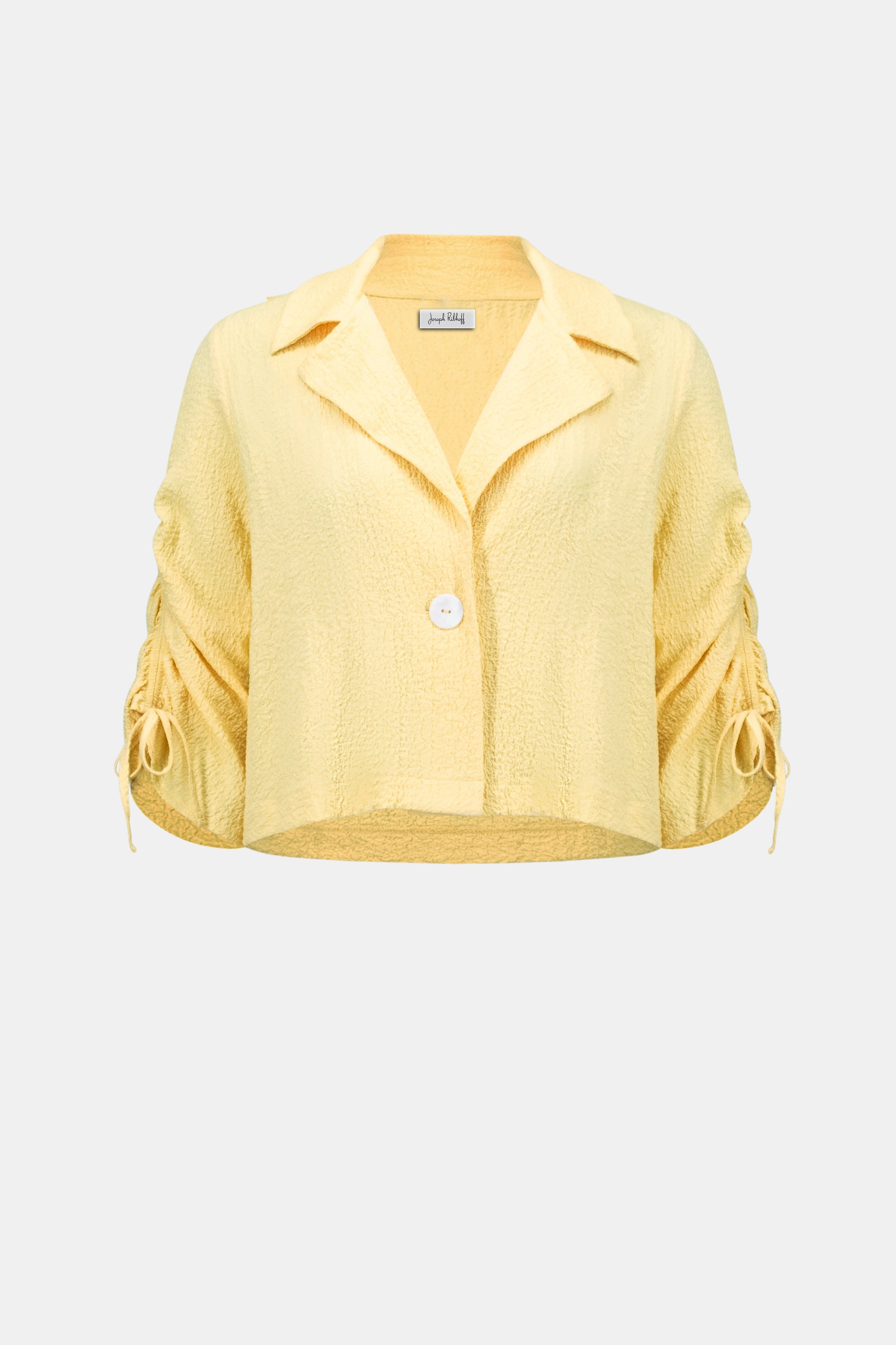 Woven Seersucker Boxy Shirred Sleeve Blazer. Style JR262143