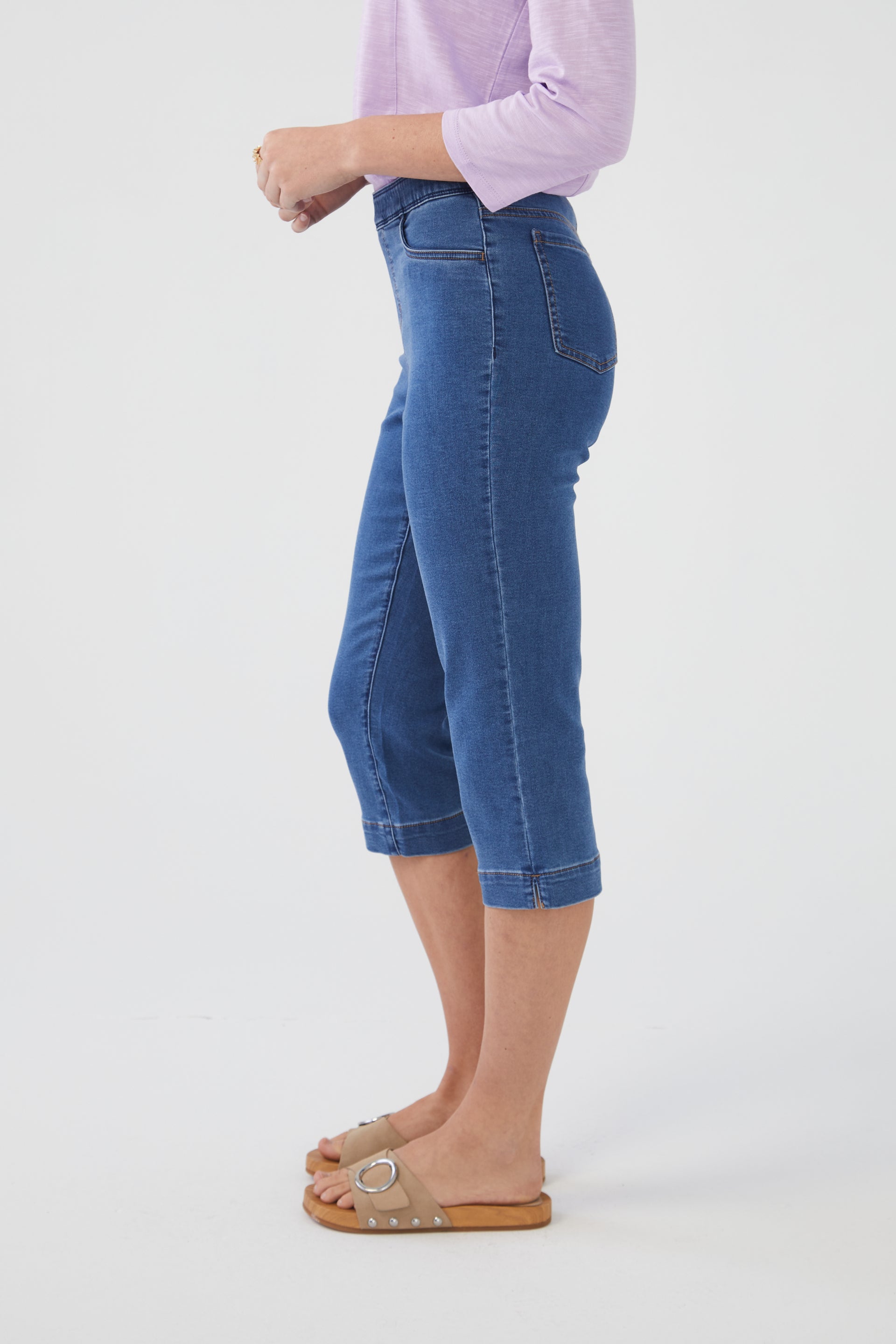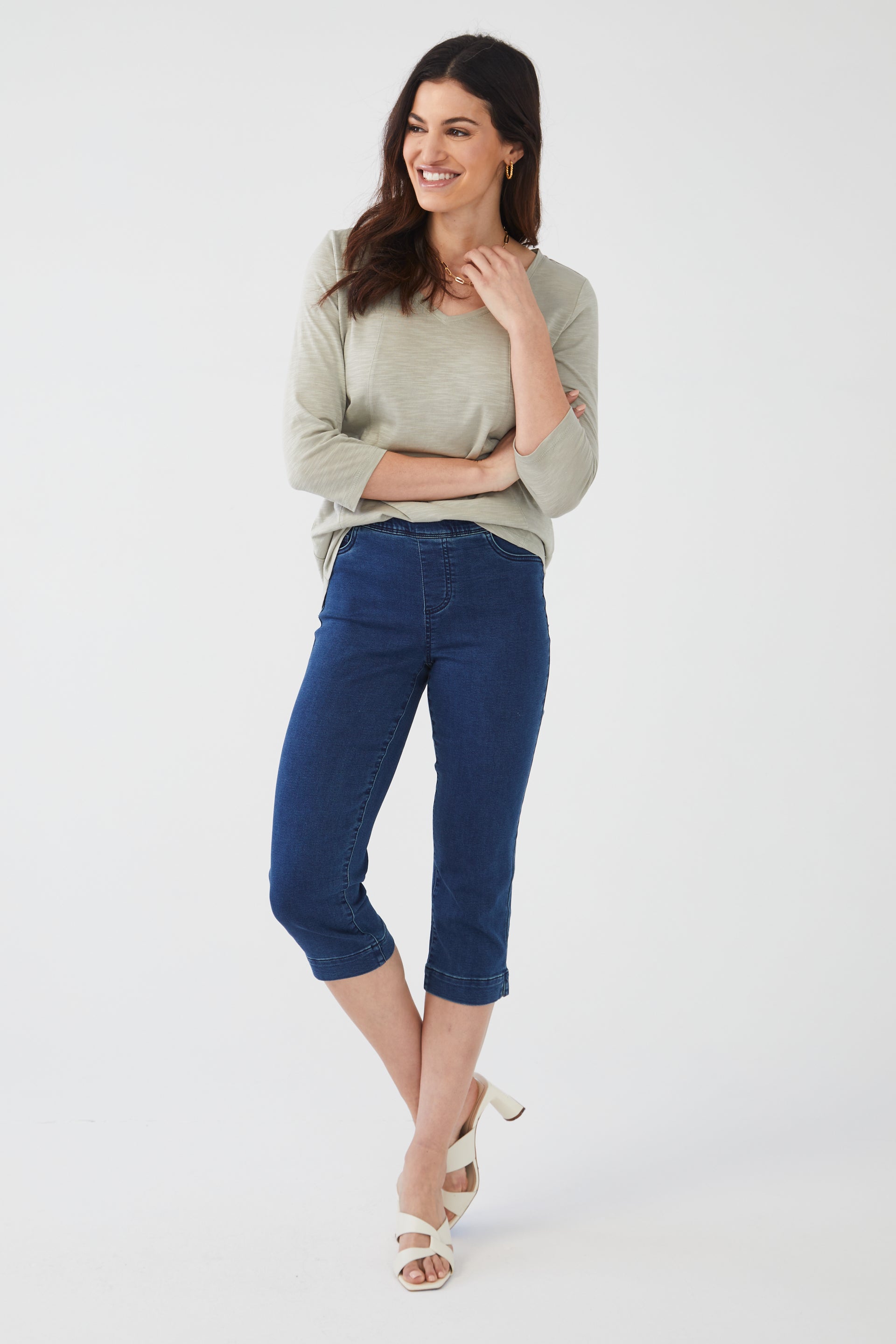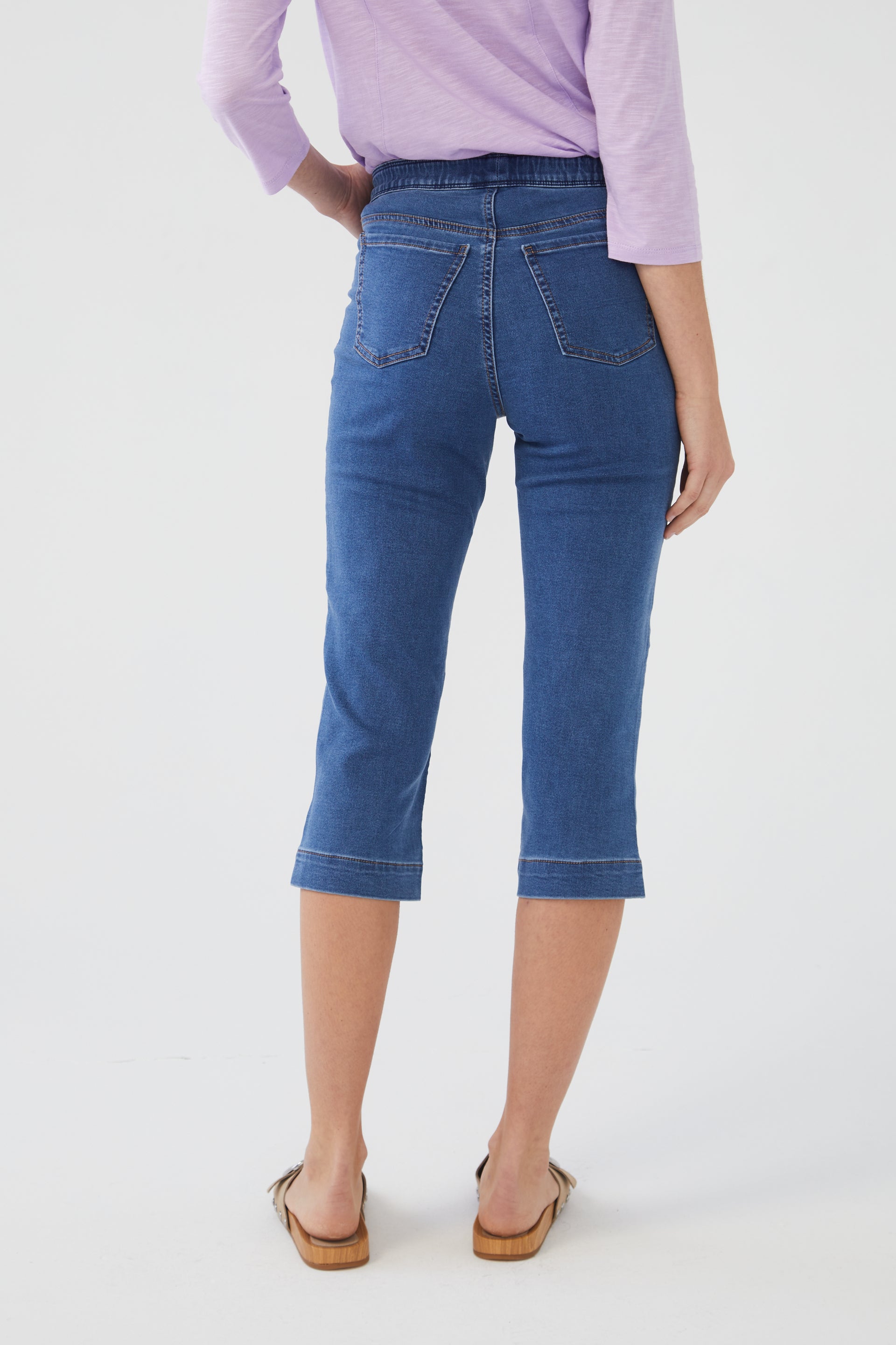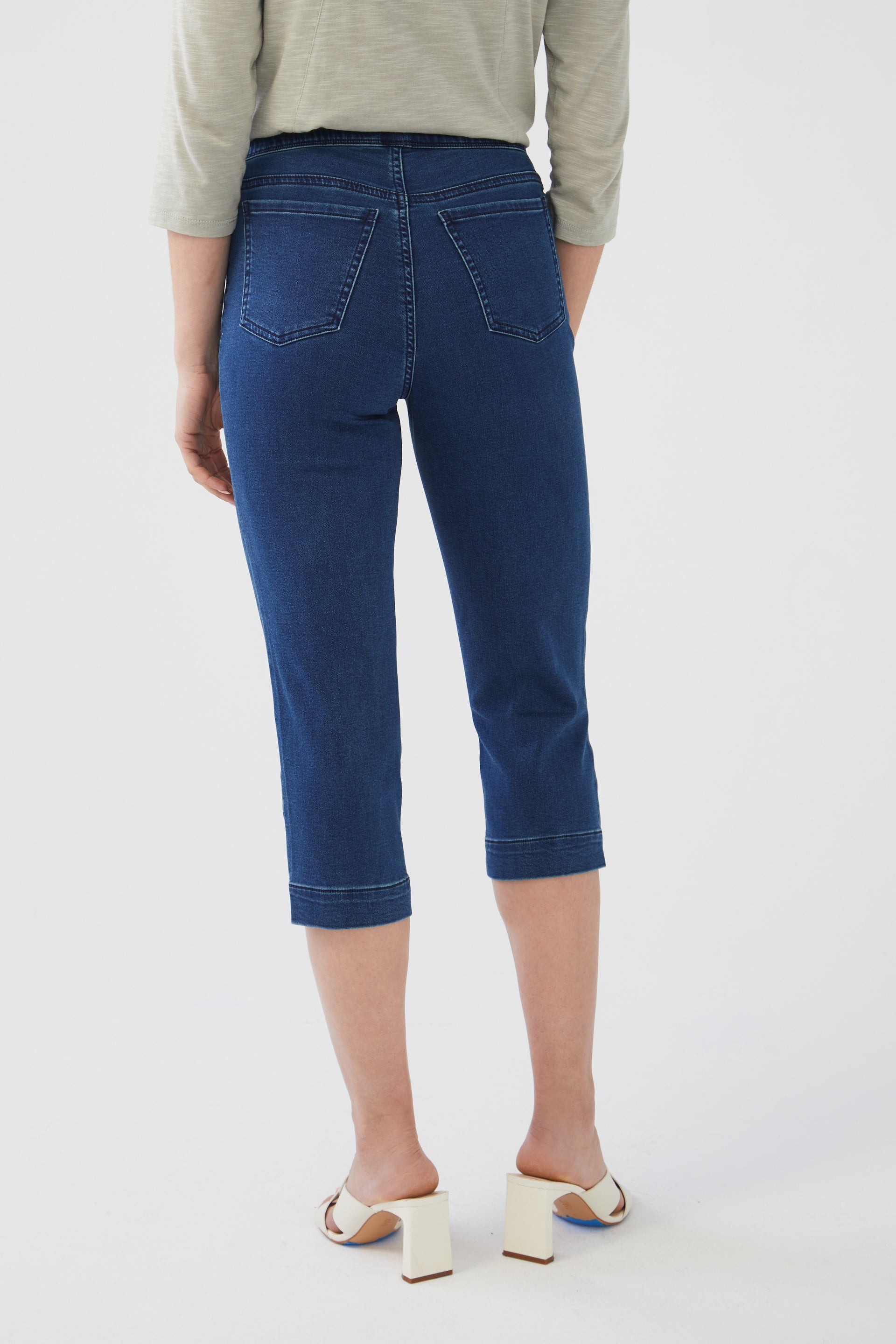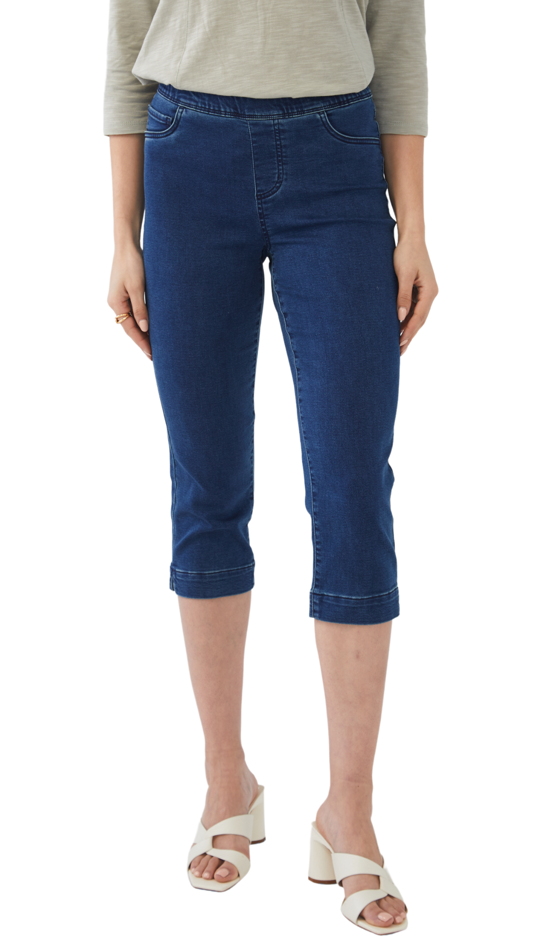 Pull On Denim Capri in Dark or Medium Wash. Style FD2873711