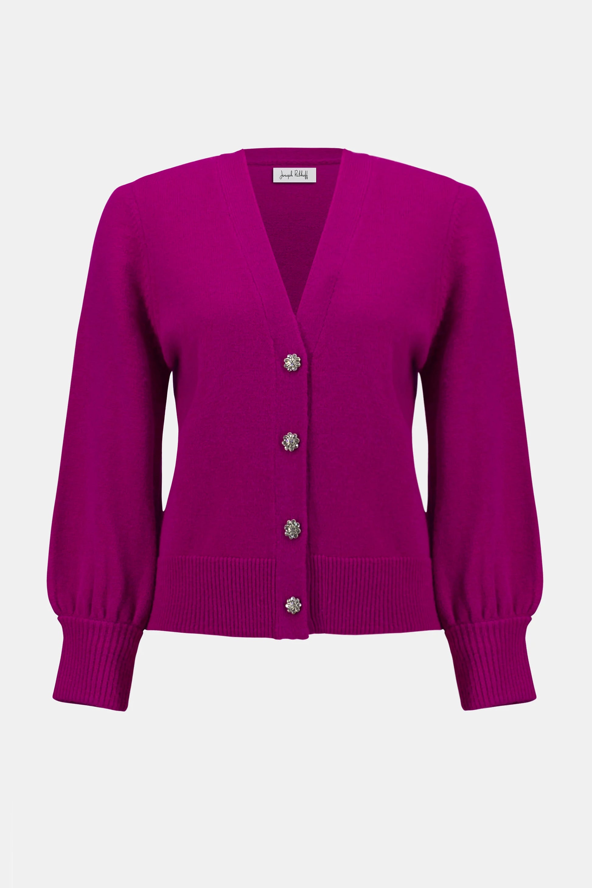 Sweater Knit Puff Sleeves Cardigan. Style JR253906